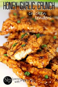 This recipe for Honey Garlic Crunch Chicken Tenders delivers crunchy, sweet, sticky and totally fingerlicking good chicken tenders.