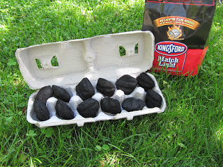 This is a great idea from Sewmanyways to fill a cardboard (not styrofoam) egg carton with ready to light charcoal to boost up your campfire or bbq quickly and easily plus the egg box is easy to transport.