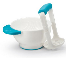 This NUK bowl and masher is perfect for on-the-go or at home, and is not expensive.