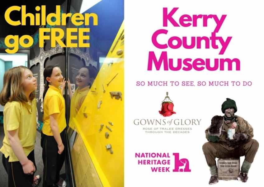 Kerry County Museum is a family-friendly museum offering free entry to children and plenty of fun activities throughout their visit. On arrival, each child receives a free discovery trail and pencil and is sent on a journey of discovery. There are plenty of fun things to do, from object spotting in the 1916 exhibition, writing your name in ancient Ogham, finding out all about Tom Crean word to our colourful Knights & Fairy trail in the Medieval Experience.