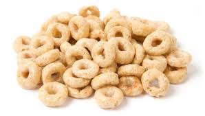 Take a piece of plasticine or play dough and stick 2 skewers (sharp end into the playdough) so they are sticking up. Then take some Cheerios out of a box.